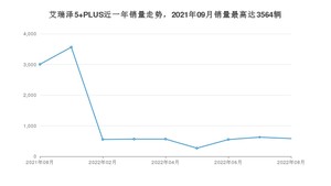2022年8月,艾瑞泽5 PLUS销量为583辆,同比下降80.59%,环比下降7.02%。2021年08月-2022年08月份,艾瑞泽5 PLUS销量为10287辆,同比下降51.03%。
