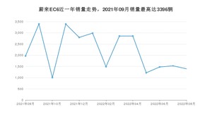 2022年8月,蔚来EC6销量为1397辆,同比下降29.09%,环比下降8.51%。2021年08月-2022年08月份,蔚来EC6销量为28368辆,同比增长17.68%。