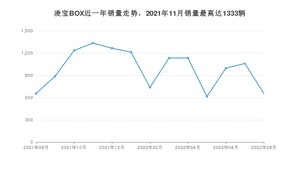 2022年8月,凌宝BOX销量为655辆,同比下降0.15%,环比下降38.15%。2021年08月-2022年08月份,凌宝BOX销量为12912辆,同比增长301.49%。