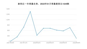 2022年8月,拿铁销量为149辆,同比增长14%,环比下降80.32%。2021年08月-2022年08月份,拿铁销量为6543辆,同比增长654%。