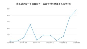 2022年8月,奔驰EQA销量为487辆,同比增长24%,环比增长28.5%。2021年08月-2022年08月份,奔驰EQA销量为1476辆,同比增长73%。