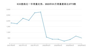 2022年8月,KX3傲跑销量为499辆,同比下降72.55%,环比下降25.63%。2021年08月-2022年08月份,KX3傲跑销量为16455辆,同比下降56.4%。