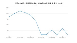 2022年8月,讴歌CDX销量为11辆,同比下降93.6%,环比下降84.29%。2021年08月-2022年08月份,讴歌CDX销量为1297辆,同比下降74.02%。