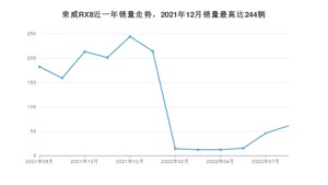 2022年8月,荣威RX8销量为61辆,同比下降66.48%,环比增长32.61%。2021年08月-2022年08月份,荣威RX8销量为1373辆,同比下降64%。