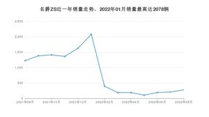 2022年8月,名爵ZS销量为276辆,同比下降77.47%,环比增长32.69%。2021年08月-2022年08月份,名爵ZS销量为10634辆,同比下降65.1%。