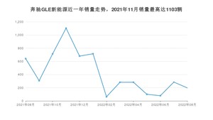 2022年8月,奔驰GLE新能源销量为197辆,同比下降69.27%,环比下降31.12%。2021年08月-2022年08月份,奔驰GLE新能源销量为5451辆,同比增长75.84%。