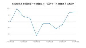 2022年8月,发现运动版新能源销量为90辆,环比增长2.27%。2021年08月-2022年08月份,发现运动版新能源销量为693辆,