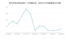 2022年8月,雷克萨斯UX新能源销量为63辆,同比下降51.91%,环比增长50%。2021年08月-2022年08月份,雷克萨斯UX新能源销量为1792辆,同比下降82.37%。