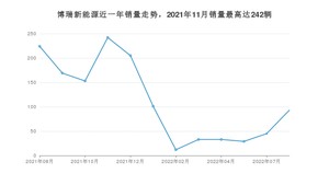 2022年8月,博瑞新能源销量为93辆,同比下降58.48%,环比增长106.67%。2021年08月-2022年08月份,博瑞新能源销量为1339辆,同比下降94.05%。