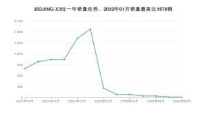 2022年8月,BEIJING-X3销量为16辆,同比下降97.99%,环比持平。2021年08月-2022年08月份,BEIJING-X3销量为7923辆,同比下降50.51%。