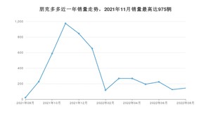 2022年8月,朋克多多销量为143辆,同比增长580.95%,环比增长15.32%。2021年08月-2022年08月份,朋克多多销量为4641辆,同比增长22%。