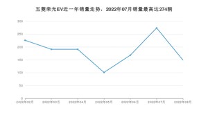 2022年8月,五菱荣光EV销量为149辆,环比下降45.62%。2021年08月-2022年08月份,五菱荣光EV销量为1300辆,