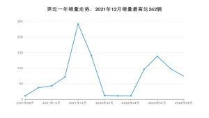 2022年8月,羿销量为74辆,同比增长572.73%,环比下降24.49%。2021年08月-2022年08月份,羿销量为985辆,同比增长8%。
