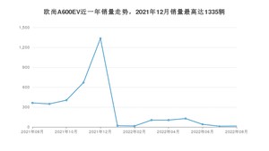 2022年8月,欧尚A600EV销量为14辆,同比下降96.14%,环比增长16.67%。2021年08月-2022年08月份,欧尚A600EV销量为3554辆,同比增长295.33%。