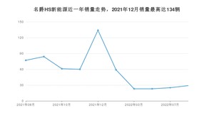 2022年8月,名爵HS新能源销量为29辆,同比下降62.34%,环比增长16%。2021年08月-2022年08月份,名爵HS新能源销量为575辆,同比下降49.02%。