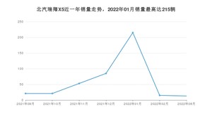 2022年8月,北汽瑞翔品牌总体销量达到13辆,其中北汽瑞翔X5销量达到13辆,占品牌总销量的100%。