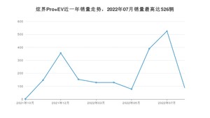 2022年8月,炫界Pro EV销量为88辆,环比下降83.27%。2021年08月-2022年08月份,炫界Pro EV销量为1998辆,