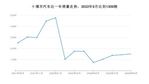 2022年9月,十堰市汽车总销量为1509辆,同比下降39.88%,环比增长5.01%。2021年09月-2022年09月份,十堰市总销量为28388辆,同比下降22.71%。在最近1年中,十堰市销量在2022年01月达到最高,销量为4766辆。