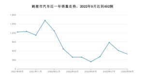 2022年9月,鹤壁市汽车总销量为492辆,同比下降60%,环比下降20%。2021年09月-2022年09月份,鹤壁市总销量为10589辆,同比下降31.12%。在最近1年中,鹤壁市销量在2021年12月达到最高,销量为1617辆。