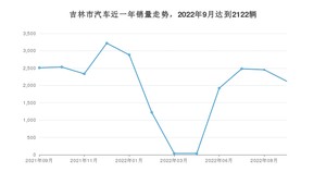 2022年9月,吉林市汽车总销量为2122辆,同比下降15.46%,环比下降13.49%。2021年09月-2022年09月份,吉林市总销量为23746辆,同比下降33.31%。在最近1年中,吉林市销量在2021年12月达到最高,销量为3219辆。