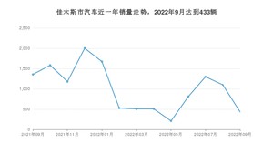 2022年9月,佳木斯市汽车总销量为433辆,同比下降68.09%,环比下降60.64%。2021年09月-2022年09月份,佳木斯市总销量为13193辆,同比下降40.76%。在最近1年中,佳木斯市销量在2021年12月达到最高,销量为2002辆。