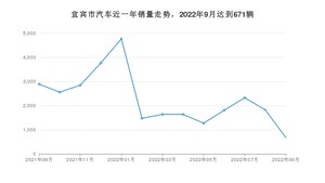 2022年9月,宜宾市汽车总销量为671辆,同比下降76.78%,环比下降63.23%。2021年09月-2022年09月份,宜宾市总销量为29484辆,同比下降27.42%。在最近1年中,宜宾市销量在2022年01月达到最高,销量为4769辆。