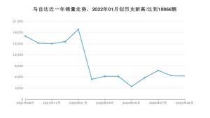 2022年9月,全国汽车总销量为1448020辆,马自达品牌的销量占比为0.43%,在所有汽车企业销量排名中位列第37名。2021年09月-2022年09月份,全国汽车总销量为18956941辆,马自达品牌的销量占比为0.68%,在所有汽车企业销量排名中位列第32名。