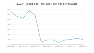 在国内市场上,Jeep在2022年9月的销量为507辆,同比下降84.37%,环比下降20.28%。2021年09月-2022年09月份,Jeep累计销量为18545辆,较去年同期下降64.79%。