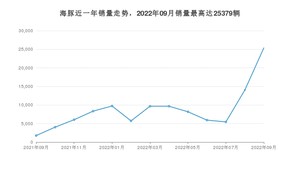 2022年9月,海豚销量为25379辆,同比增长1%,环比增长80.74%。2021年09月-2022年09月份,海豚销量为113904辆,同比增长6%。