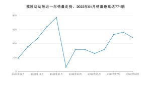 2022年9月,揽胜运动版销量为483辆,同比增长151.56%,环比下降13.9%。2021年09月-2022年09月份,揽胜运动版销量为5251辆,同比下降58.27%。