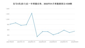 2022年9月,宝马5系(进口)销量为521辆,同比下降43.43%,环比增长17.34%。2021年09月-2022年09月份,宝马5系(进口)销量为8682辆,同比下降44.6%。