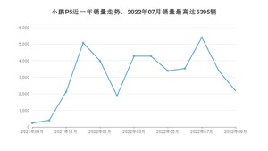 2022年9月,小鹏P5销量为2166辆,同比增长798.76%,环比下降36.11%。2021年09月-2022年09月份,小鹏P5销量为40105辆,同比增长12%。