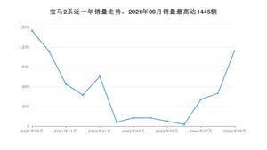 2022年9月,宝马2系销量为1153辆,同比下降20.21%,环比增长131.99%。2021年09月-2022年09月份,宝马2系销量为6915辆,同比下降16.26%。