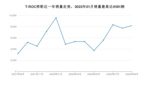 2022年9月,T-ROC探歌销量为8202辆,同比增长154.64%,环比增长6.15%。2021年09月-2022年09月份,T-ROC探歌销量为78857辆,同比下降17.75%。