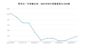 2022年9月,辉昂销量为185辆,同比下降82.06%,环比增长72.9%。2021年09月-2022年09月份,辉昂销量为4190辆,同比下降63.77%。