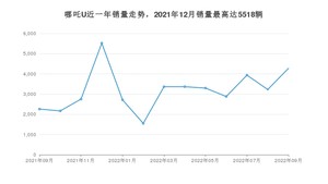 2022年9月,哪吒U销量为4274辆,同比增长89.2%,环比增长32.44%。2021年09月-2022年09月份,哪吒U销量为41307辆,同比增长339.58%。