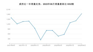 2022年9月,威然销量为1852辆,同比增长16.77%,环比增长31.72%。2021年09月-2022年09月份,威然销量为13948辆,同比下降28.04%。