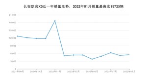 2022年9月,长安欧尚X5销量为5563辆,同比下降56.35%,环比增长6.53%。2021年09月-2022年09月份,长安欧尚X5销量为109173辆,同比增长7.29%。
