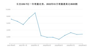 2022年9月,长安UNI-T销量为2795辆,同比下降60.9%,环比增长3.17%。2021年09月-2022年09月份,长安UNI-T销量为54384辆,同比下降47.86%。