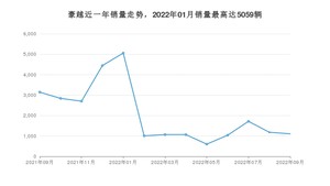 2022年9月,豪越销量为1105辆,同比下降64.83%,环比下降6.44%。2021年09月-2022年09月份,豪越销量为26965辆,同比下降42.92%。