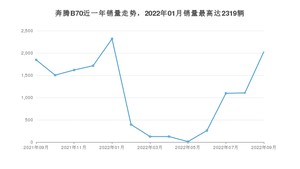 2022年9月,奔腾B70销量为2030辆,同比增长9.97%,环比增长83.88%。2021年09月-2022年09月份,奔腾B70销量为14146辆,同比下降12.67%。