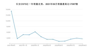 2022年9月,长安CS75销量为2539辆,同比下降85.14%,环比下降14.11%。2021年09月-2022年09月份,长安CS75销量为54342辆,同比下降84.07%。