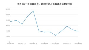 2022年9月,名爵5销量为3872辆,同比下降48.09%,环比下降13.13%。2021年09月-2022年09月份,名爵5销量为74495辆,同比增长8.75%。