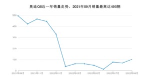 2022年9月,奥迪Q8销量为102辆,同比下降79.39%,环比增长47.83%。2021年09月-2022年09月份,奥迪Q8销量为2628辆,同比下降56.5%。