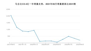 2022年9月,马自达CX-4销量为196辆,同比下降90.35%,环比下降42.35%。2021年09月-2022年09月份,马自达CX-4销量为7576辆,同比下降79.33%。