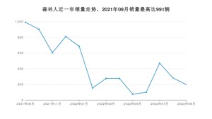 2022年9月,森林人销量为196辆,同比下降80.22%,环比下降30.5%。2021年09月-2022年09月份,森林人销量为5819辆,同比下降61.79%。