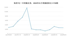 2022年9月,瑞虎7销量为2672辆,同比下降4.67%,环比下降1.26%。2021年09月-2022年09月份,瑞虎7销量为48184辆,同比增长3.47%。