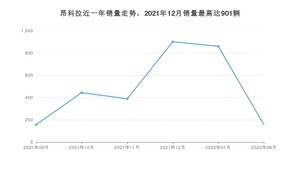 2022年9月,昂科拉销量为157辆,同比持平,2021年09月-2022年09月份,昂科拉销量为2908辆,同比下降75.44%。