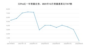 2022年9月,元Pro销量为269辆,同比下降94.91%,环比下降91.2%。2021年09月-2022年09月份,元Pro销量为58310辆,同比增长177.92%。