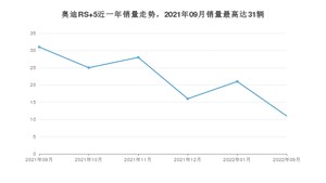 2022年9月,奥迪RS 5销量为11辆,同比下降64.52%,2021年09月-2022年09月份,奥迪RS 5销量为132辆,同比下降80.87%。